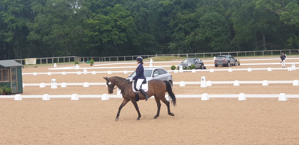 Mari Akhurst: Last week, 5/6th June Gold semi finals held at Wellington Riding in Hampshire. I was thrilled to win the team test with an amazing 71.61% and be 5% above second place!! I also then went on to win the individual test with Sky scoring 72.32% and take second place with Bear scoring 70%! I was over the moon with these results.